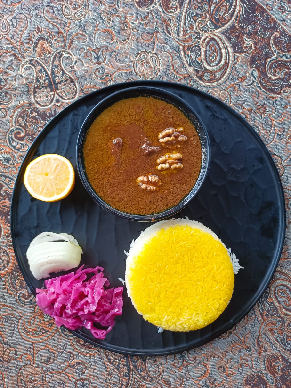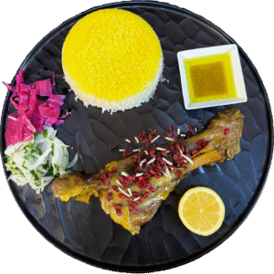 | محتویات | اکبر جوجه – رب انار – برنج زعفرانی |