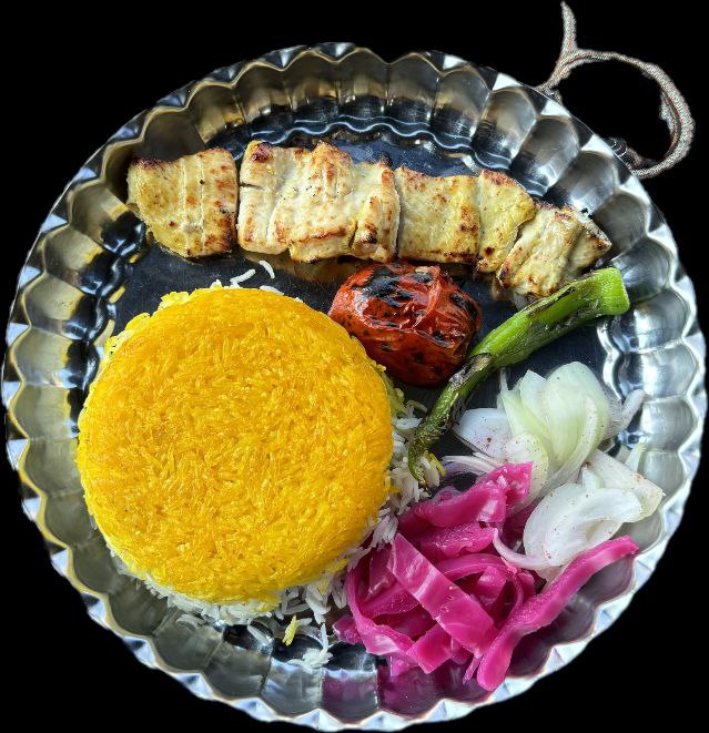 جوجه کباب ۱۵۰ گرمی همراه با برنج زعفرانی