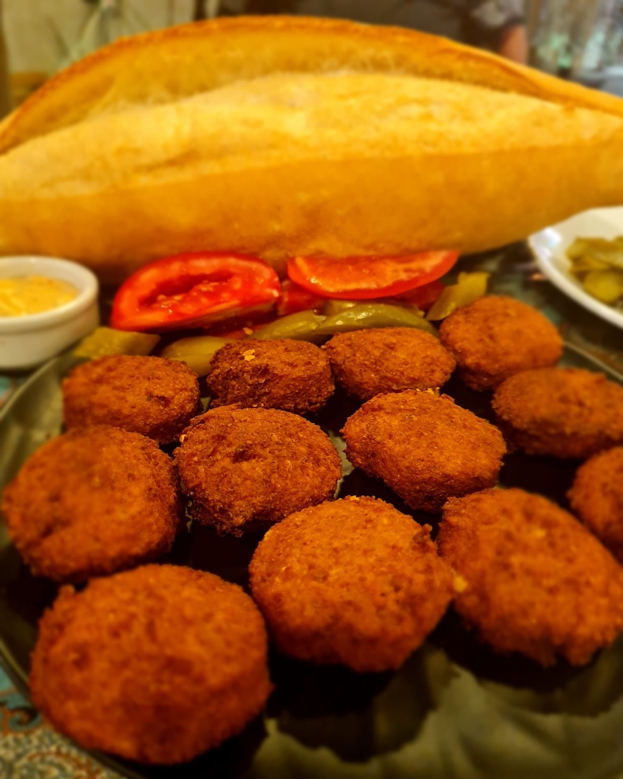دوازده عدد فلافل به همراه دورچین ، سس مخصوص و نان ساندویچی