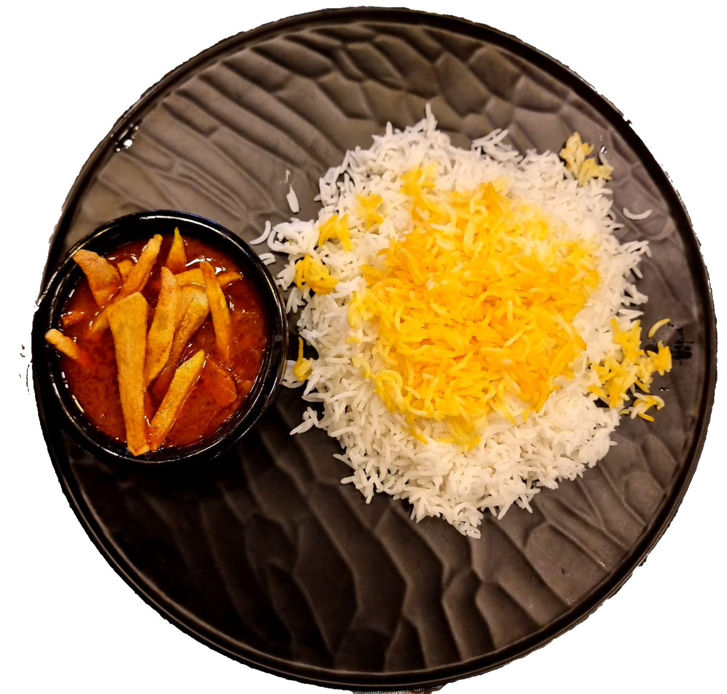 خورشت قیمه همراه با برنج زعفرانی
