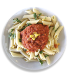 پاستا – مرغ مزه دار شده – پنیر پارمسان – خامه – ریحان